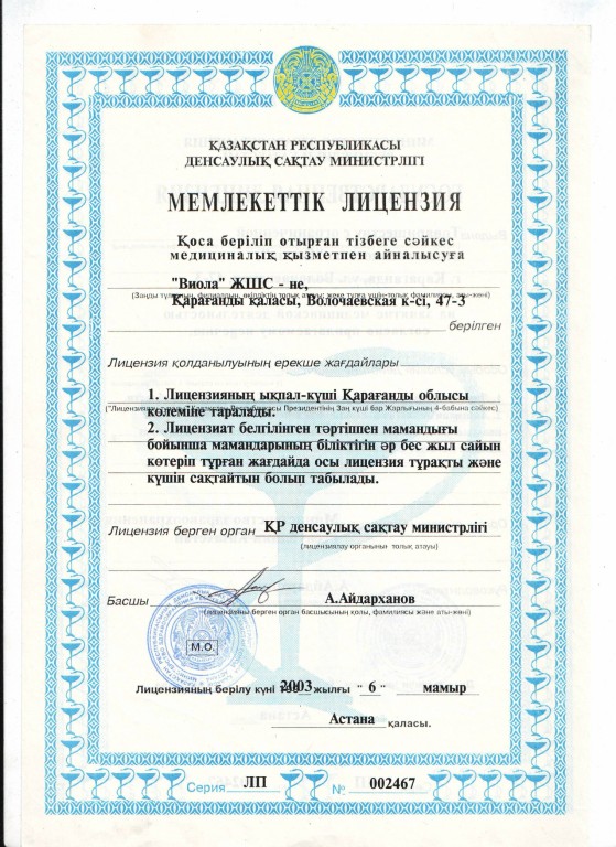 - Государственная лицензия (на государственном языке), (на русском языке)